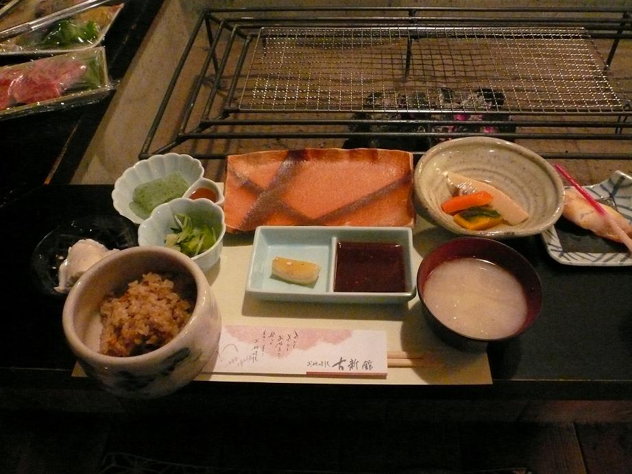 囲炉裏の炭火で焼いて食べるのですが、その他にお膳が並べられているのは、