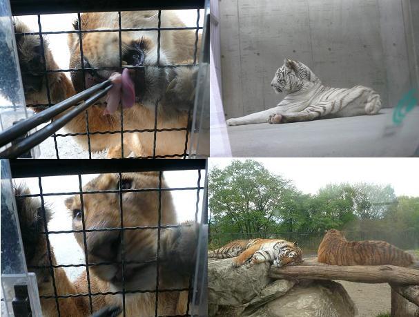 バスのサイドの足元から餌をあげるもので、最初は草食動物~そして、最後ライオンにお肉をあげるとゆうものでした。